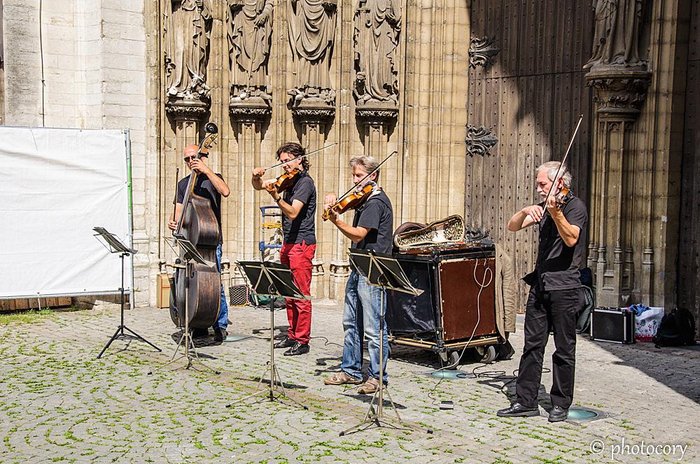 Musicians playing in front of the Cathedral of our Lady