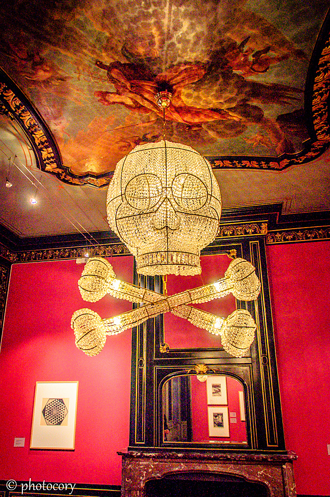 Skeleton chandelier in Escher museum