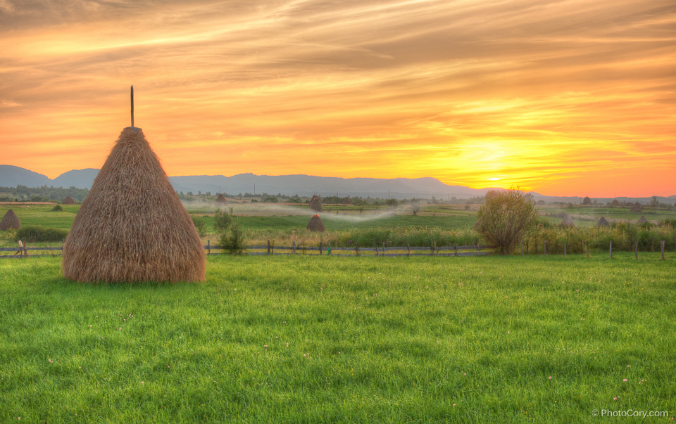 sunset hay bale maramures romania
