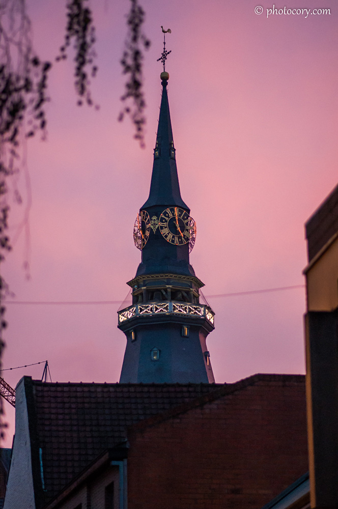 The tower of St. Quentin’s Cathedral at sunset