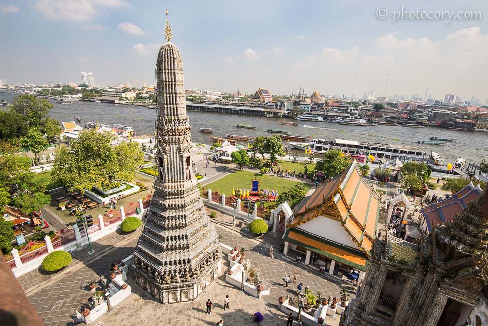 Wat Arun Complex viewed from the central temple./Complexul Templului Arun, vedere din turnul central