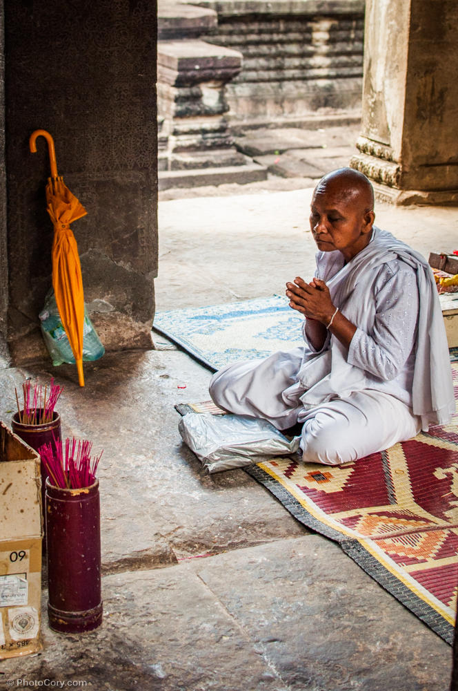 monk praying angkor wat