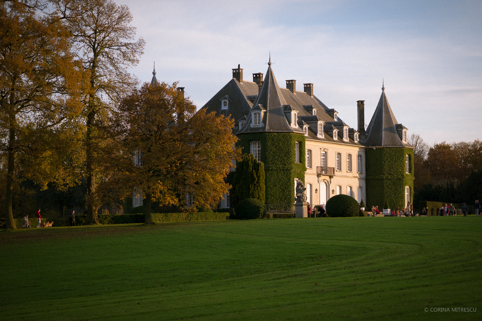 Seara calda de noiembrie pe domeniul castelului La Hulpe de langa Bruxelles.