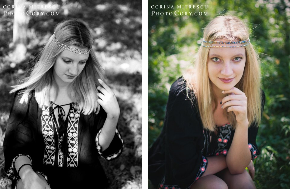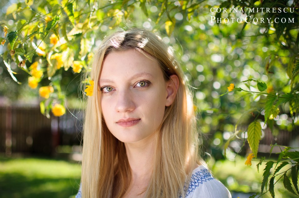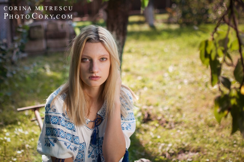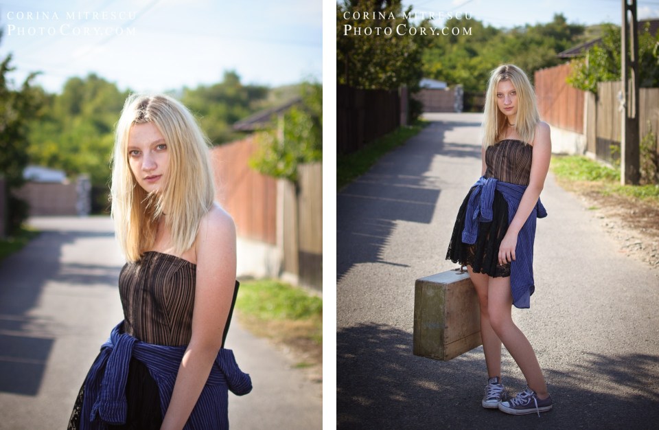 Lasand gluma cantecul la o parte ma bucur sa va arat pozele pe care i le-am facut acum cateva zile Andreei, un suflet minunat cu ochii mari, verzi. Am facut poze in gradina, printre meri si dovleci, apoi ne-am dus spre calea ferata abandonata. Ne-am distrat grozav carand pe stradute valiza de lemn veche de aproape un secol si parasolarul din masina pe post de reflector. Cam asta a iesit: